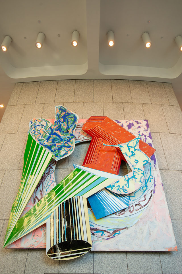 “Frank Stella’s off-wall paintings bring life to the space.”